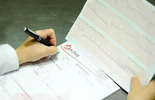 Colocamos electrodos no invasivos en las extremidades de tu mascota para obtener esta información vital. En algunos casos, también puede utilizarse para obtener una visión general del estado del corazón.